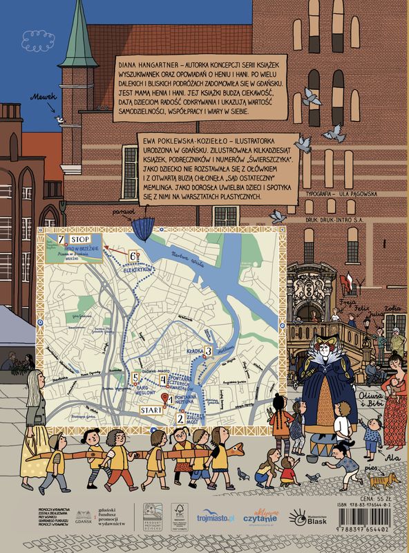 Odkrywaj Gdańsk z Heniem i Hanią! „Gdańsk. Wyszukiwanka” to bogato ilustrowana książka kartonikowa dla dzieci, stworzona przez Dianę Hangartner i zilustrowana przez uznaną artystkę Ewę Poklewską-Koziełło, pochodzącą z Gdańska. W tej książce nawet najmłodsi czytelnicy mogą samodzielnie poznawać historie bohaterów oraz wyszukiwać ukryte przedmioty i zwierzątka rozwijając przy tym swoją spostrzegawczość i wyobraźnię.