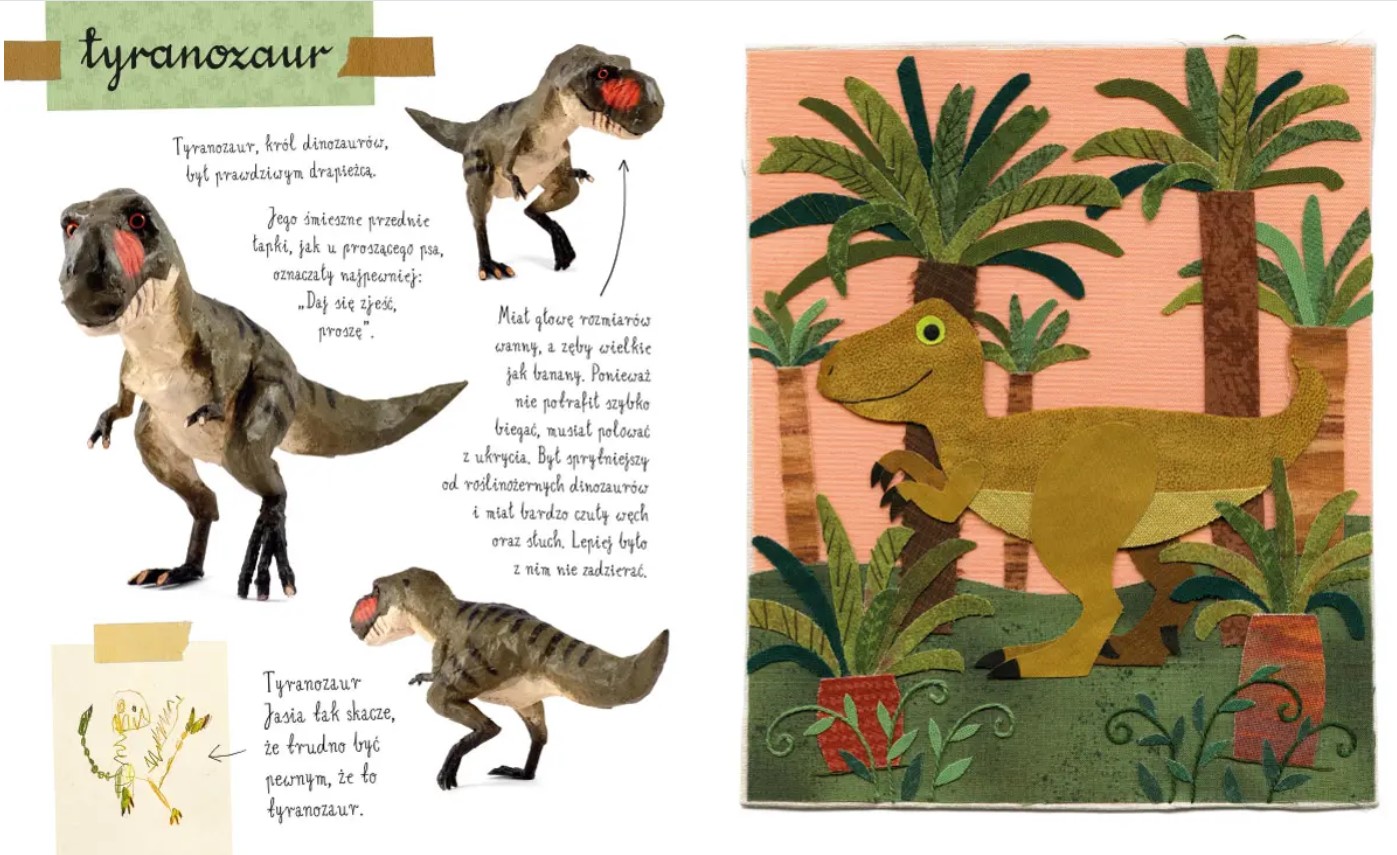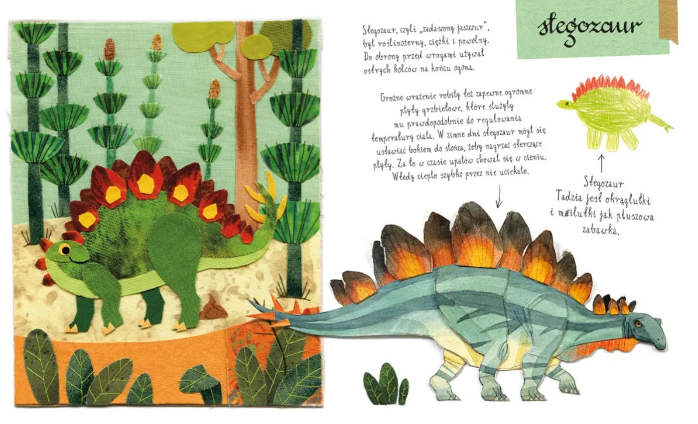 Mały atlas dinozaurów, który trzymacie w ręku, choć wciąż pełen zabawnych tekstów i czarujących ilustracji, różni się od innych książek z tej serii. W poprzednich para uznanych autorów i ilustratorów opowiadała o przyrodzie, która jest tuż obok: o ptakach i motylach z ich ogrodu, o znanych im psach i kotach, o zwierzętach spotykanych w lasach. Teraz twórcy proponują podróż do świata, który już nie istnieje, bo czy ktoś z nas widział kiedykolwiek żywe dinozaury? A ponieważ nauka wciąż nie wie o nich wszystkiego, autorzy oprowadzają was po prehistorii ścieżkami swojej wyobraźni. I tak jak osobista i indywidualna jest wyobraźnia każdego z nas, tak osobiste i indywidualne są portrety dinozaurów z atlasu. Może kiedyś naukowcy uznają, że wyglądały inaczej? A może wy wyobrażacie je sobie w całkiem inny sposób?